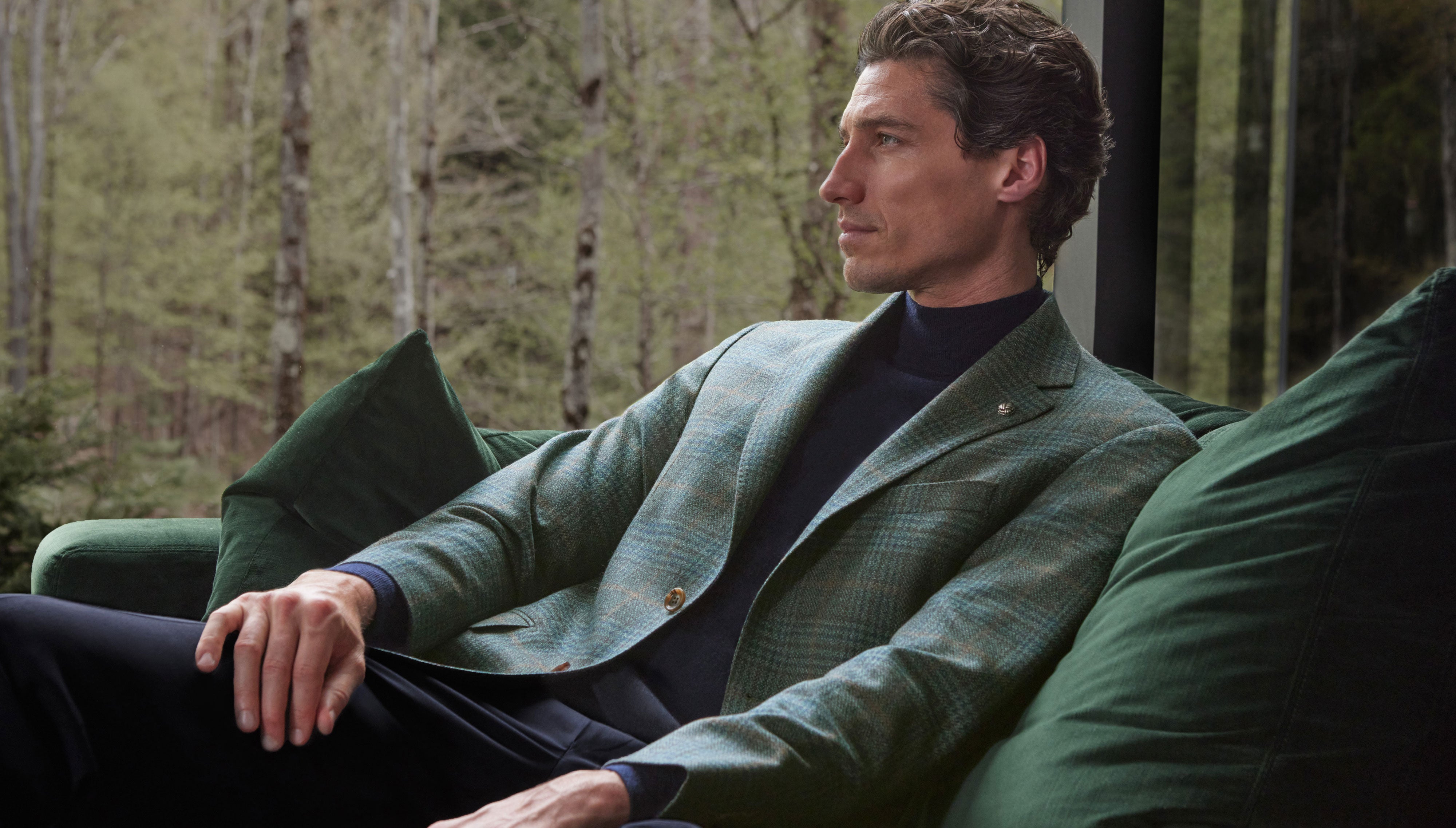 Known for its natural beauty and relaxed charm, the small town of Sutton sits outside of Montreal. Sutton’s ambiance provides the perfect backdrop to highlight the refined ease and versatility of the Fall collection. The setting echoes the use of natural materials throughout, including noble fibres such as cashmere, wool, and silk.