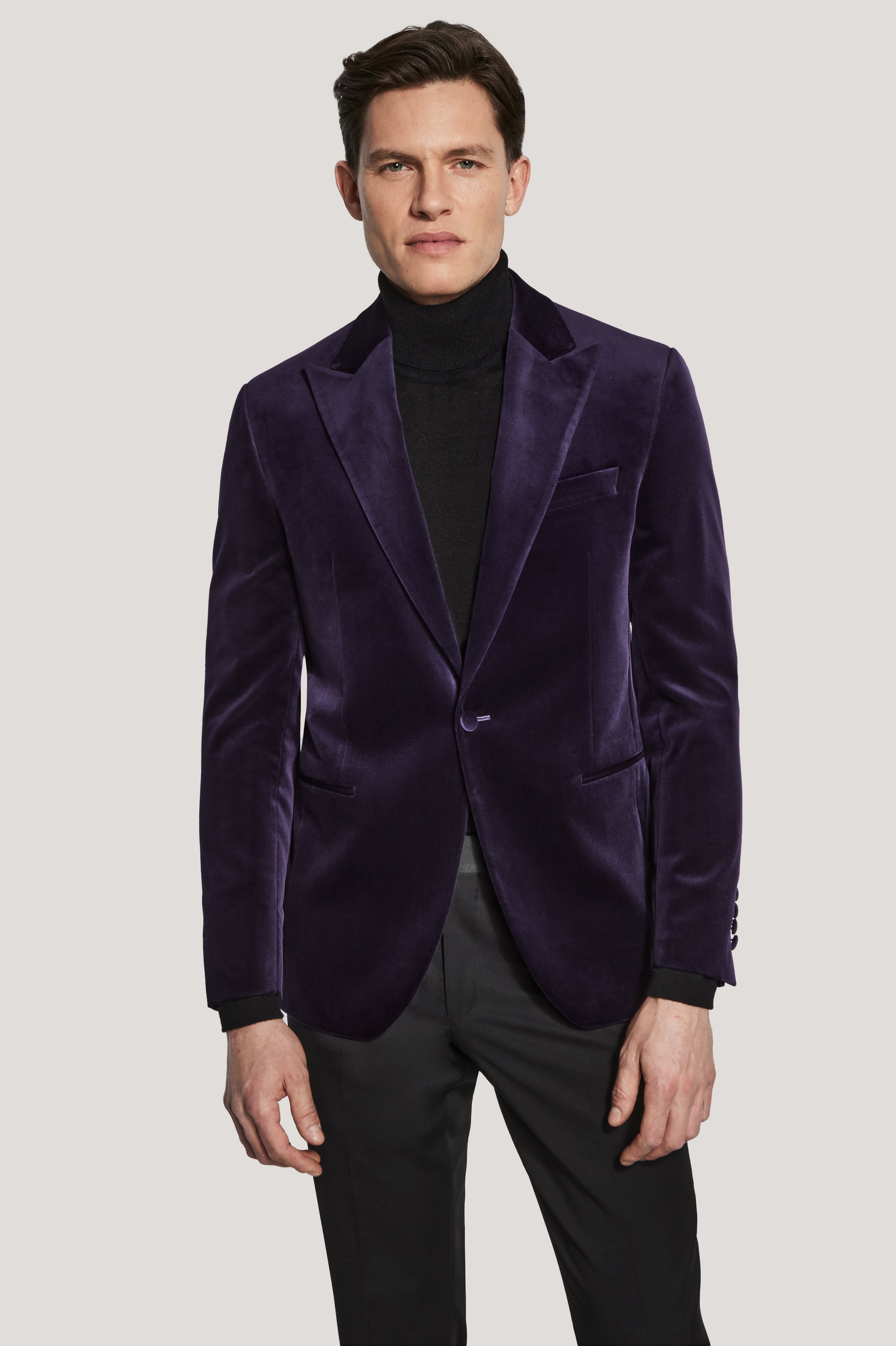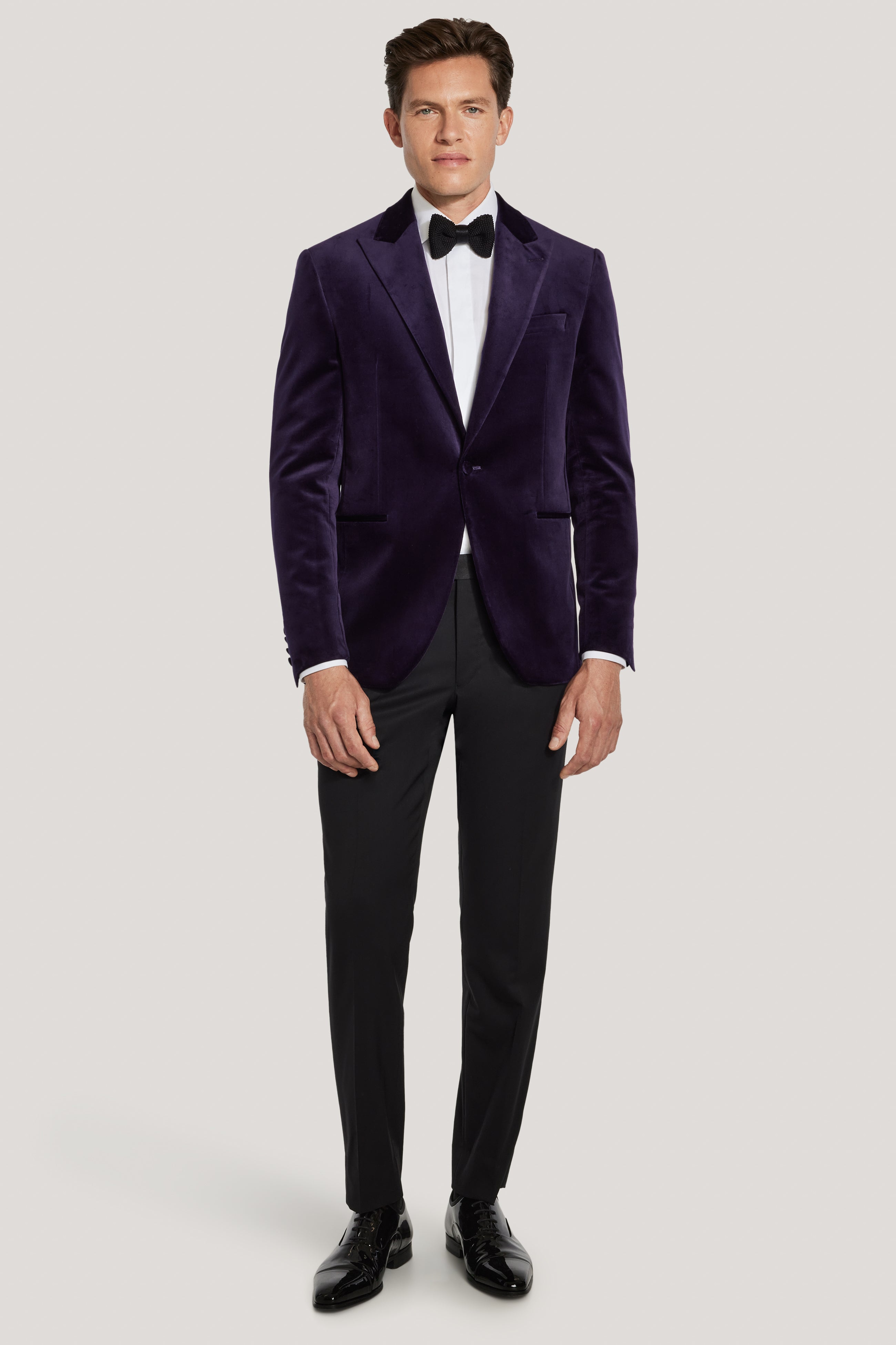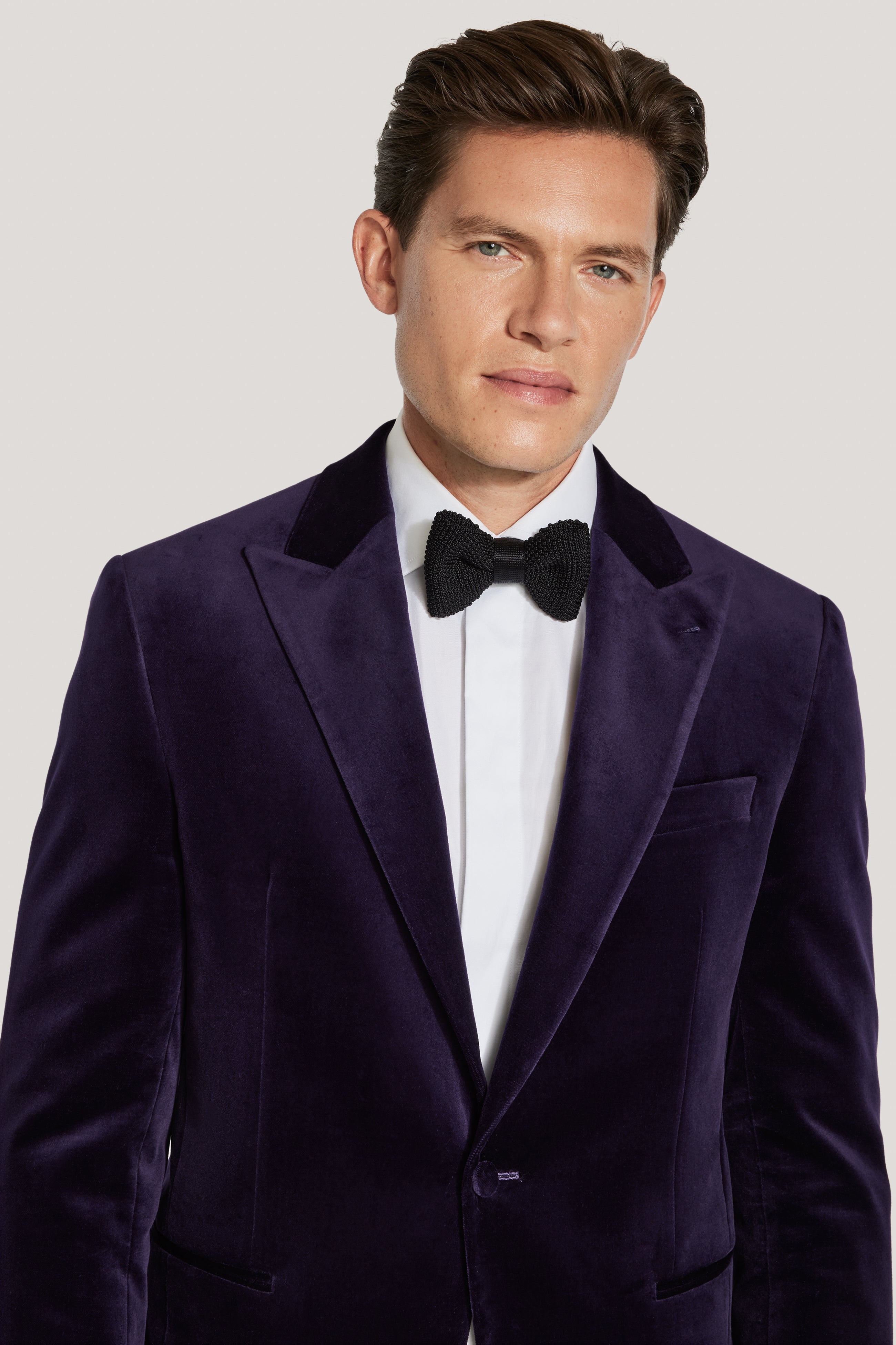 Stand out from the crowd at your next formal event with our aubergine velvet dinner jacket. Crafted for the sophisticated, confident man, our peak lapel Erie dinner jacket features tailored construction in a modern fit that is comfortable in the chest and shoulders with a slightly tapered waistline for the perfect silhouette.