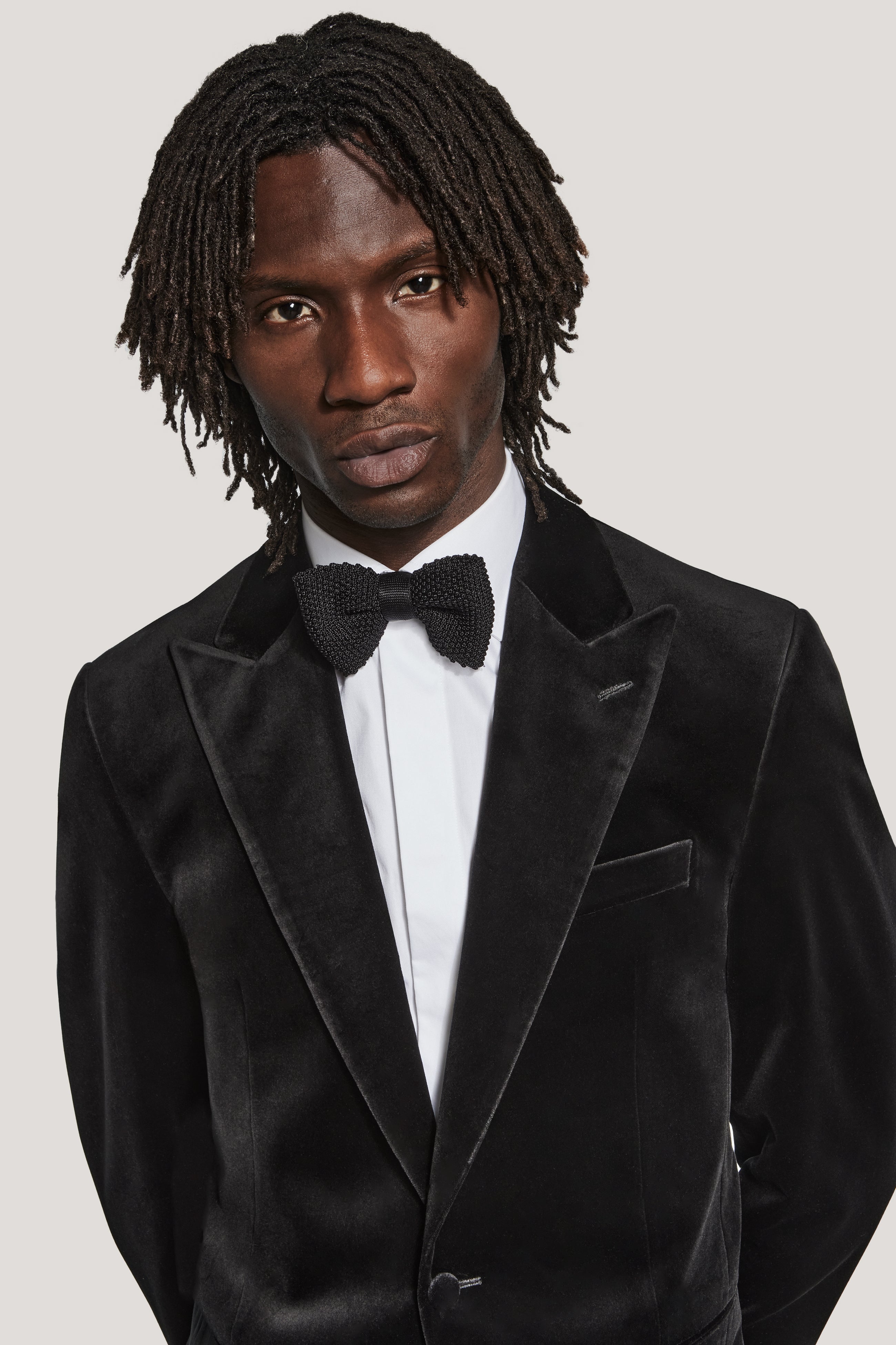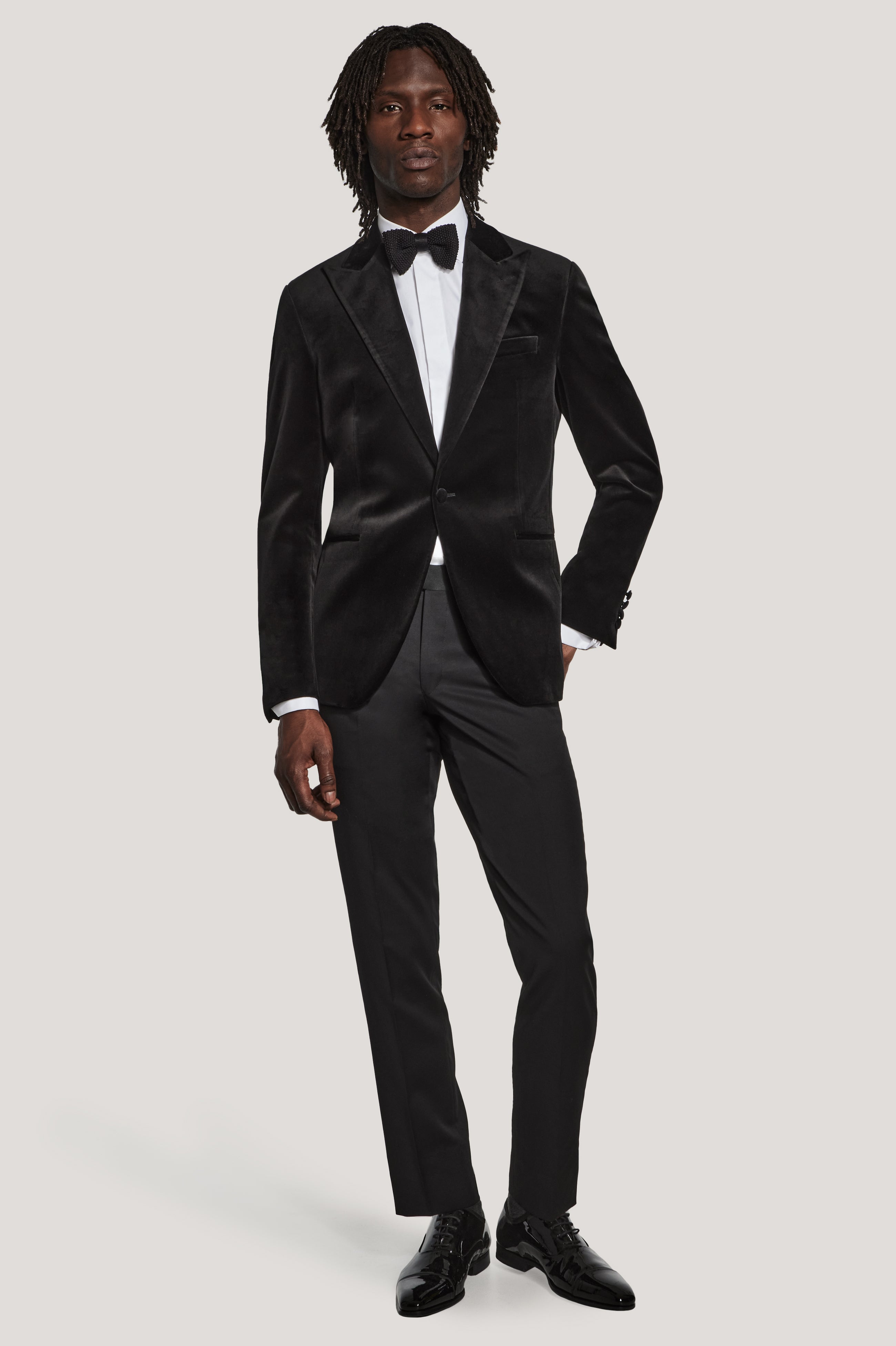 Stand out from the crowd at your next formal event with our black velvet dinner jacket. Crafted for the sophisticated, confident man, our peak lapel Erie dinner jacket features tailored construction in a modern fit that is comfortable in the chest and shoulders with a slightly tapered waistline for the perfect silhouette.