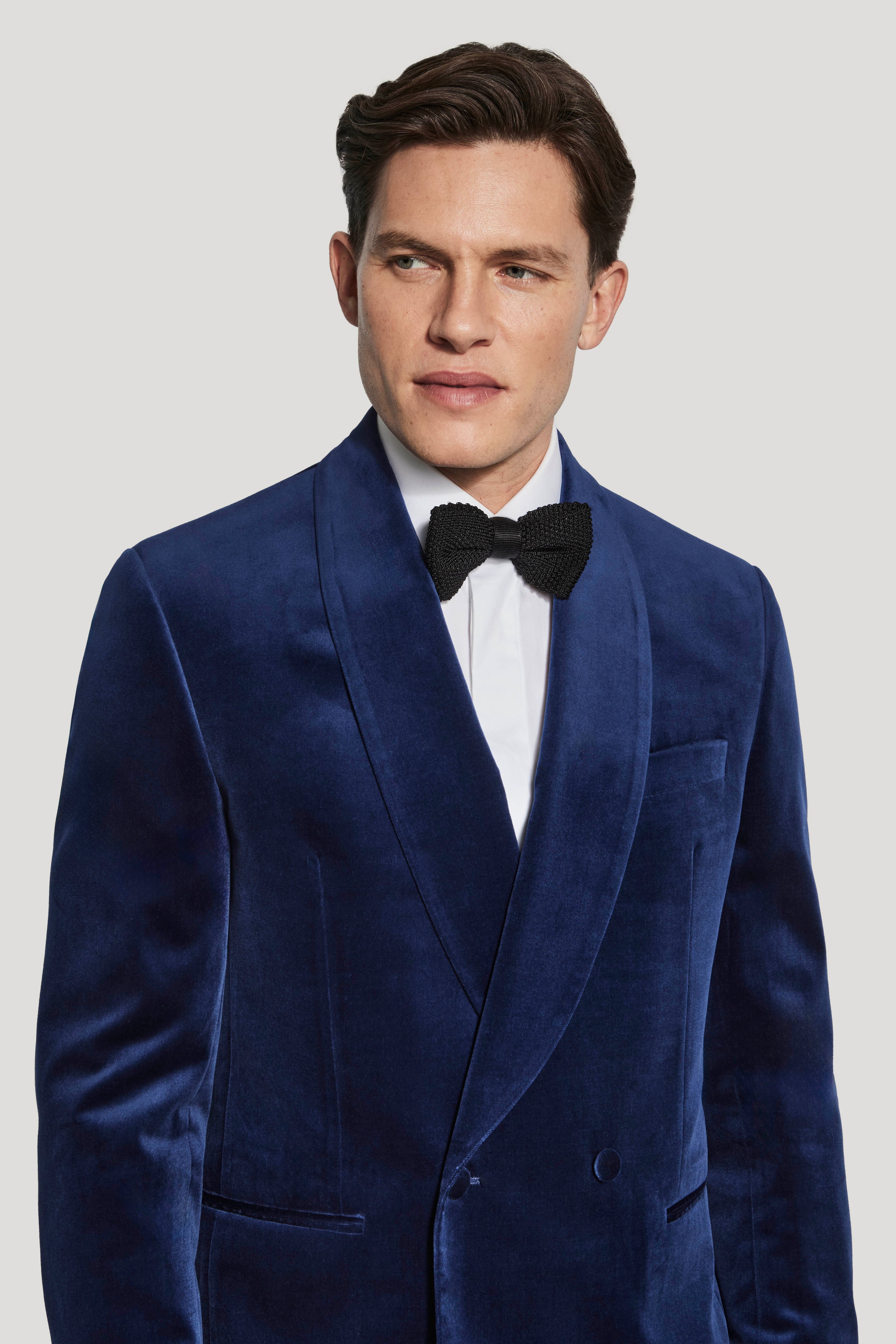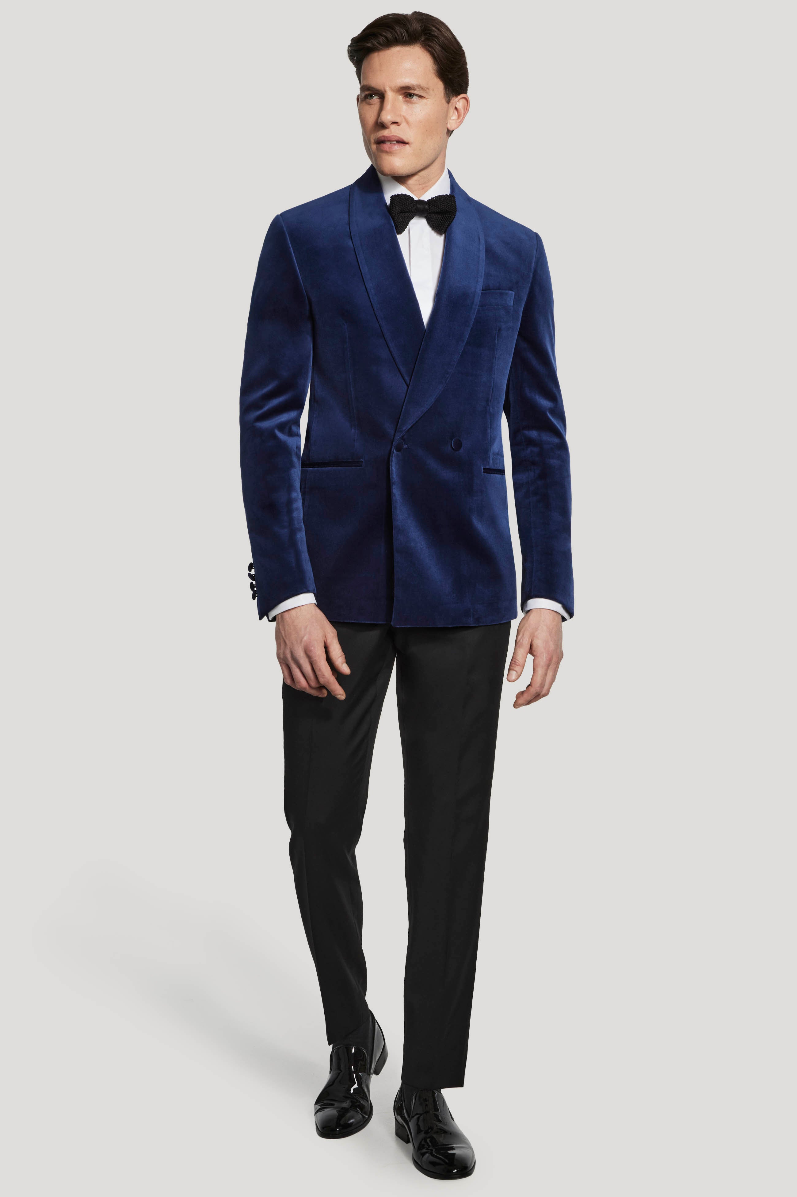 Make a bold statement at your next formal event with our burgundy velvet Ellis dinner jacket, designed for the confident, style-conscious individual. This 1 x 1 double-breasted jacket features a sleek **self-fabric shawl collar, self besom pockets, and stacked buttons for a refined, modern aesthetic. Tailored in a contemporary fit, it offers comfort through the chest and shoulders with a slightly tapered waistline for a sharp silhouette. Finished with side vents** for ease of movement, this jacket brings elevated sophistication to any black-tie occasion.