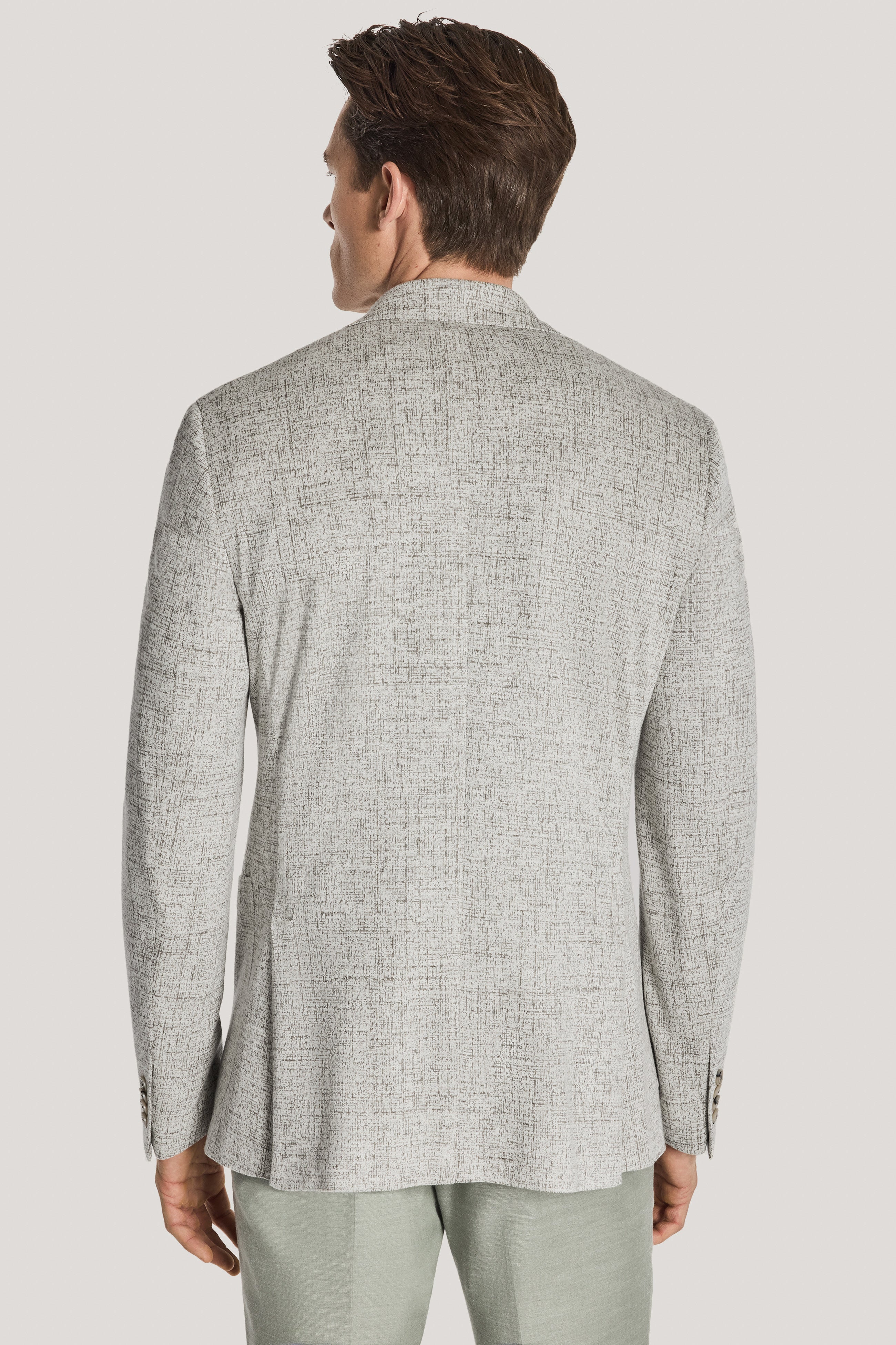The Hartford COMFORTWEAR™ blazer is expertly crafted from a luxurious blend of wool, silk, and linen, featuring a tan mélange design. The fabric, woven in Italy by the Loro Piana fabric division, enhances its refined appeal. This unconstructed, ultra-soft blazer boasts a contemporary fit and a lightweight butterfly lining, combining comfort with effortless sophistication.