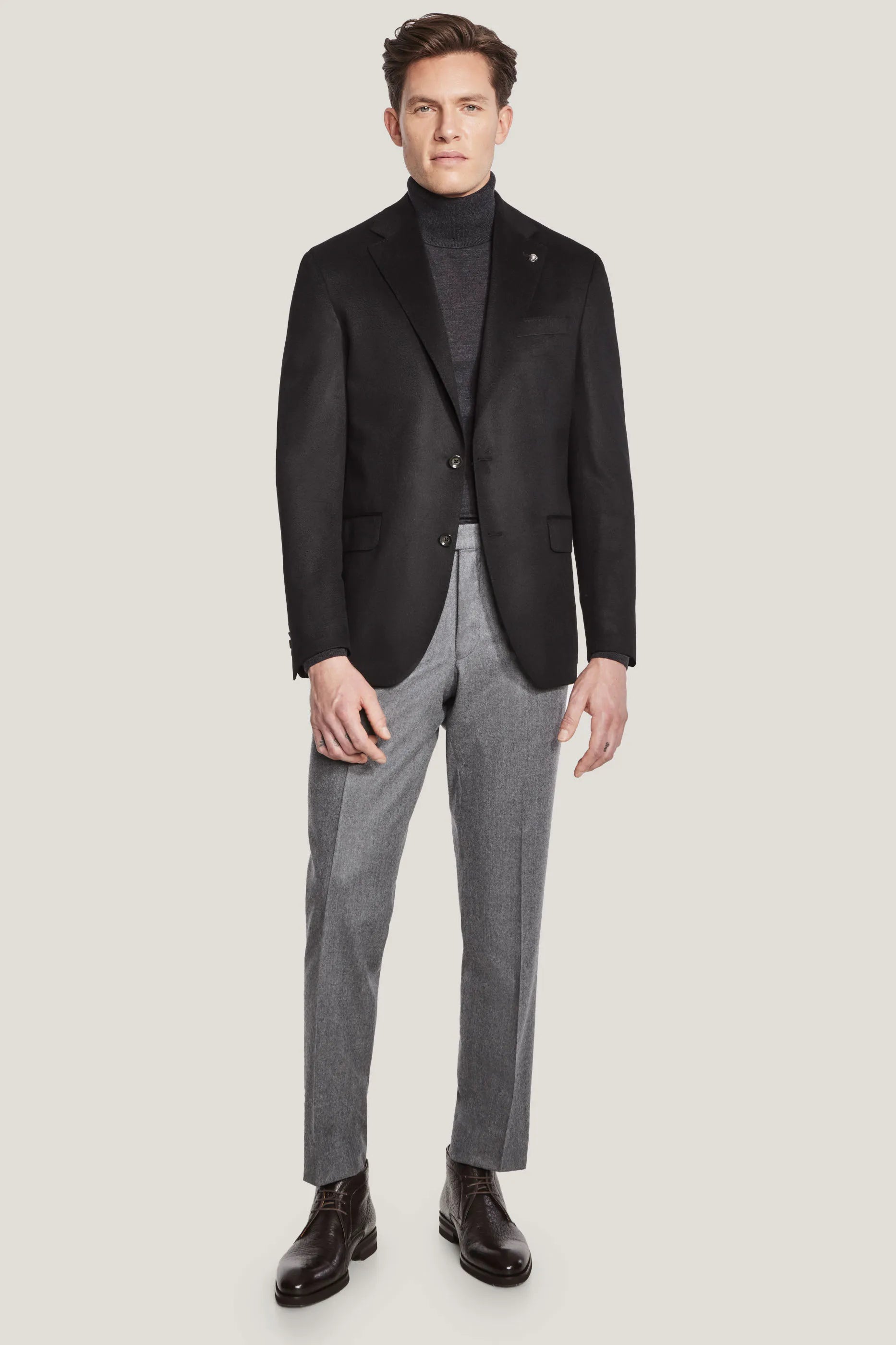 The David Solid Blazer in Black is crafted from pure cashmere in Montreal. It is entirely unconstructed in a modern fit. The elegance of cashmere and the comfort of the David model makes for an exquisite piece for the Fall season.