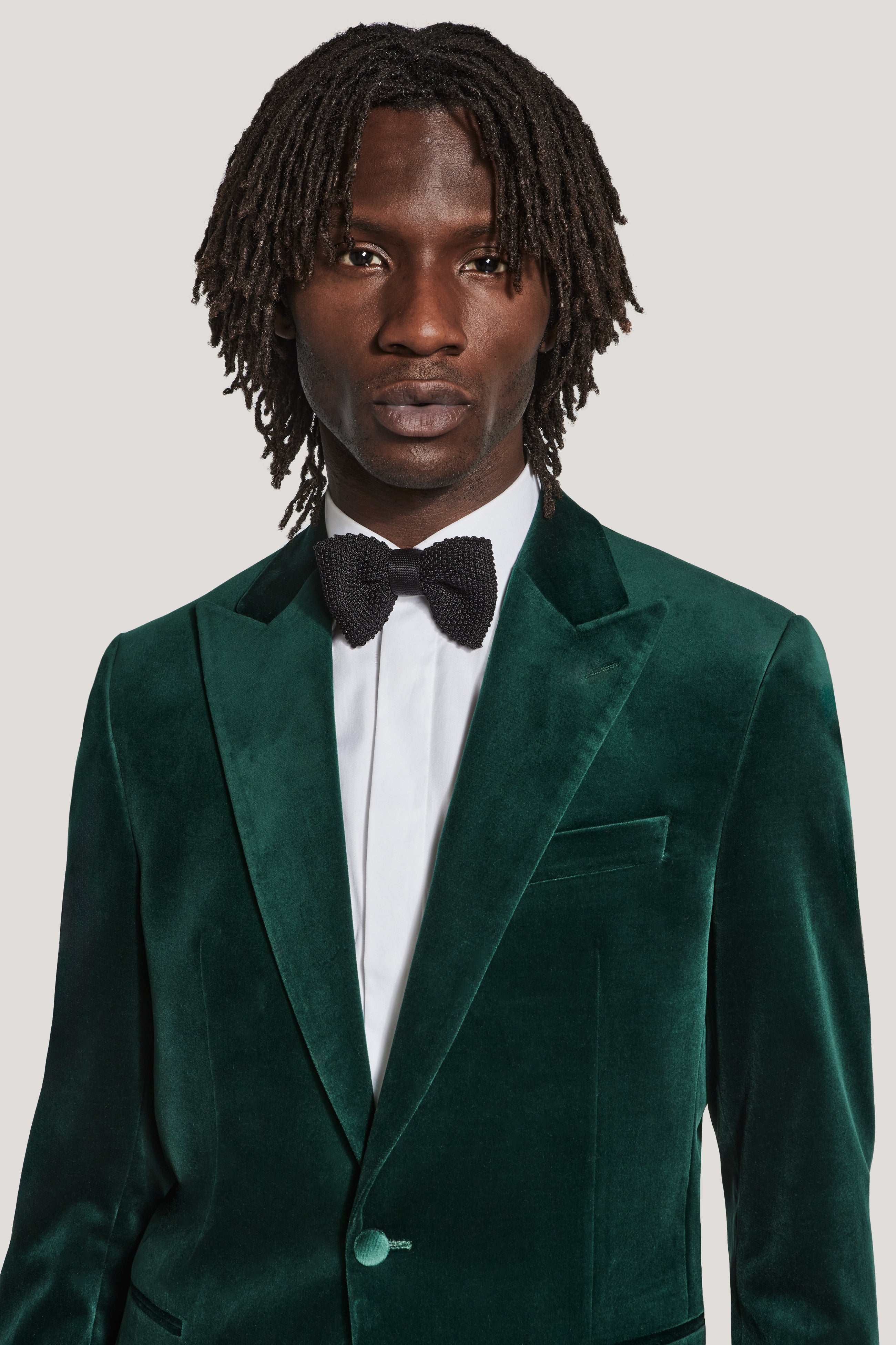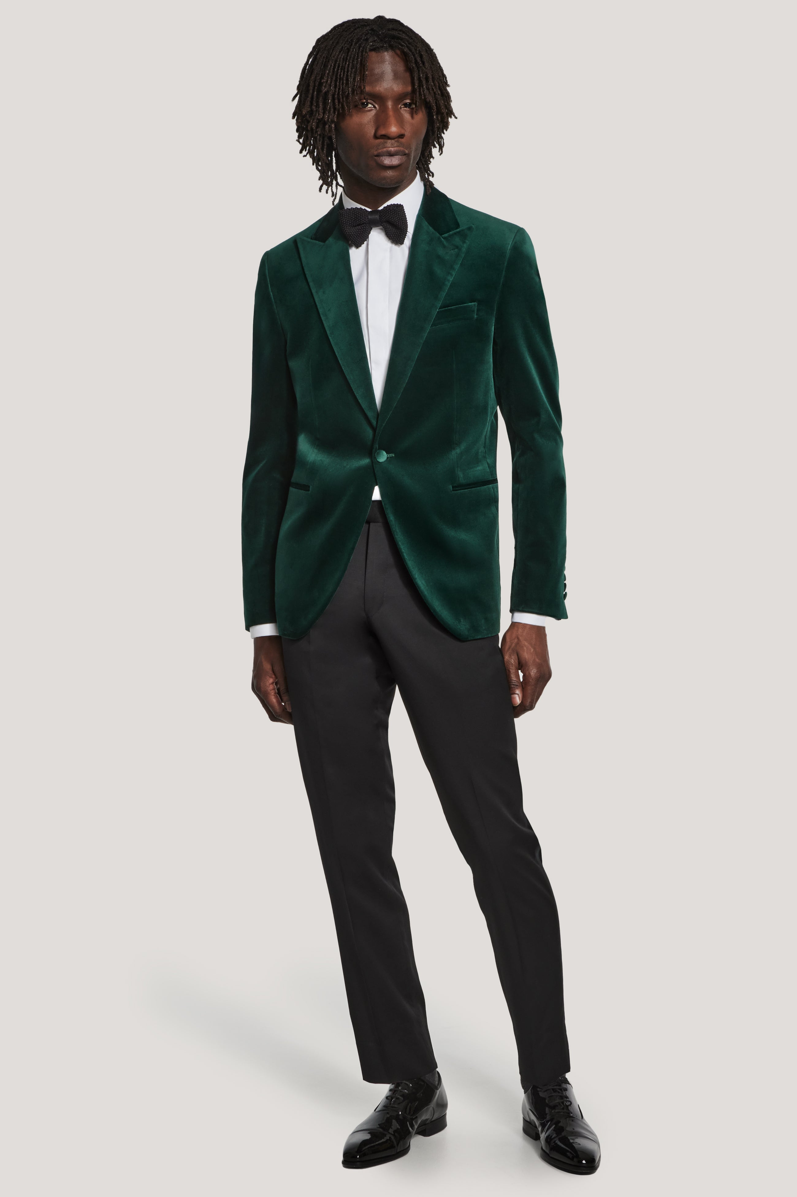Stand out from the crowd at your next formal event with our emerald green velvet dinner jacket. Crafted for the sophisticated, confident man, our peak lapel Erie dinner jacket features tailored construction in a modern fit that is comfortable in the chest and shoulders with a slightly tapered waistline for the perfect silhouette.