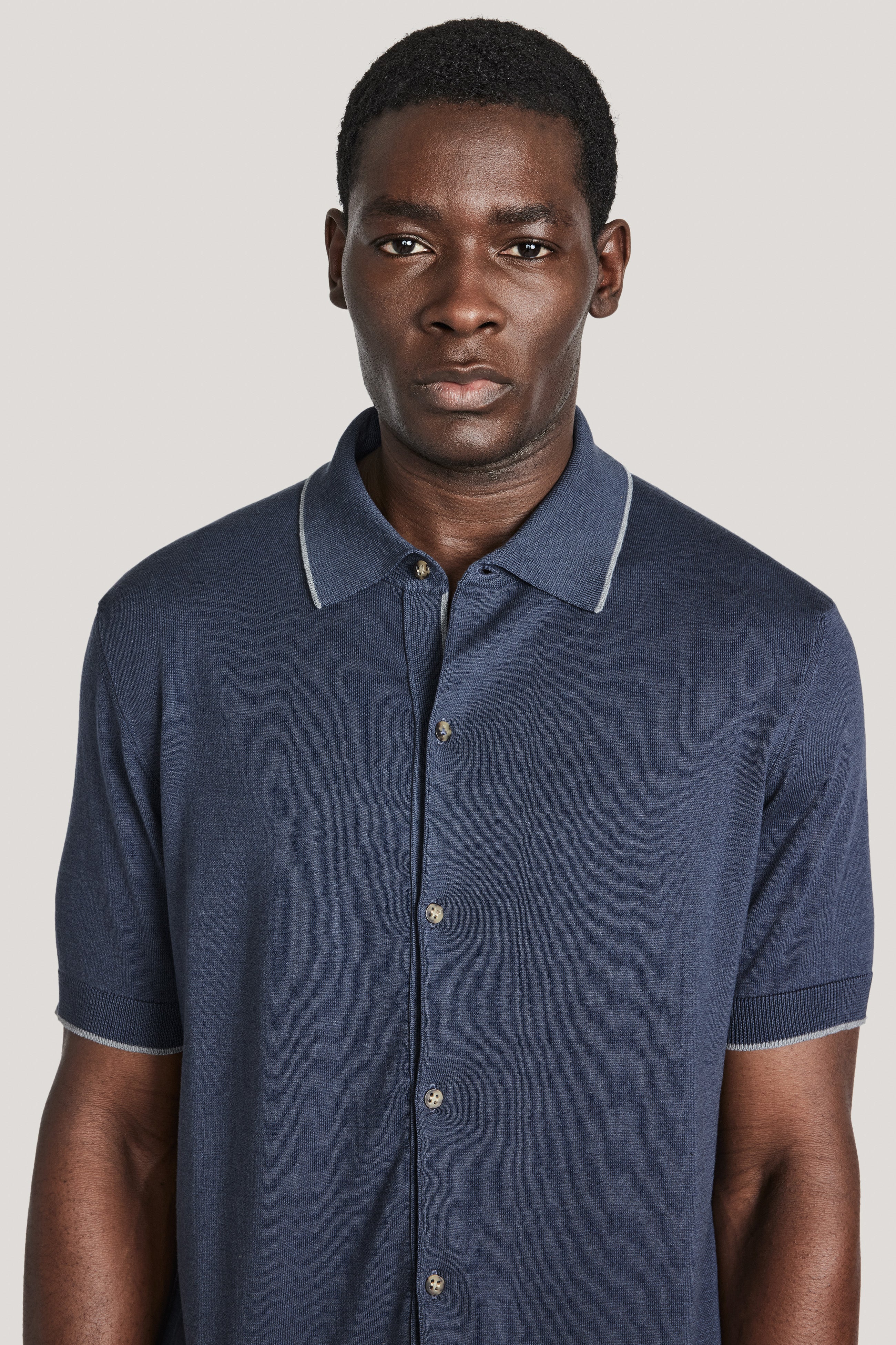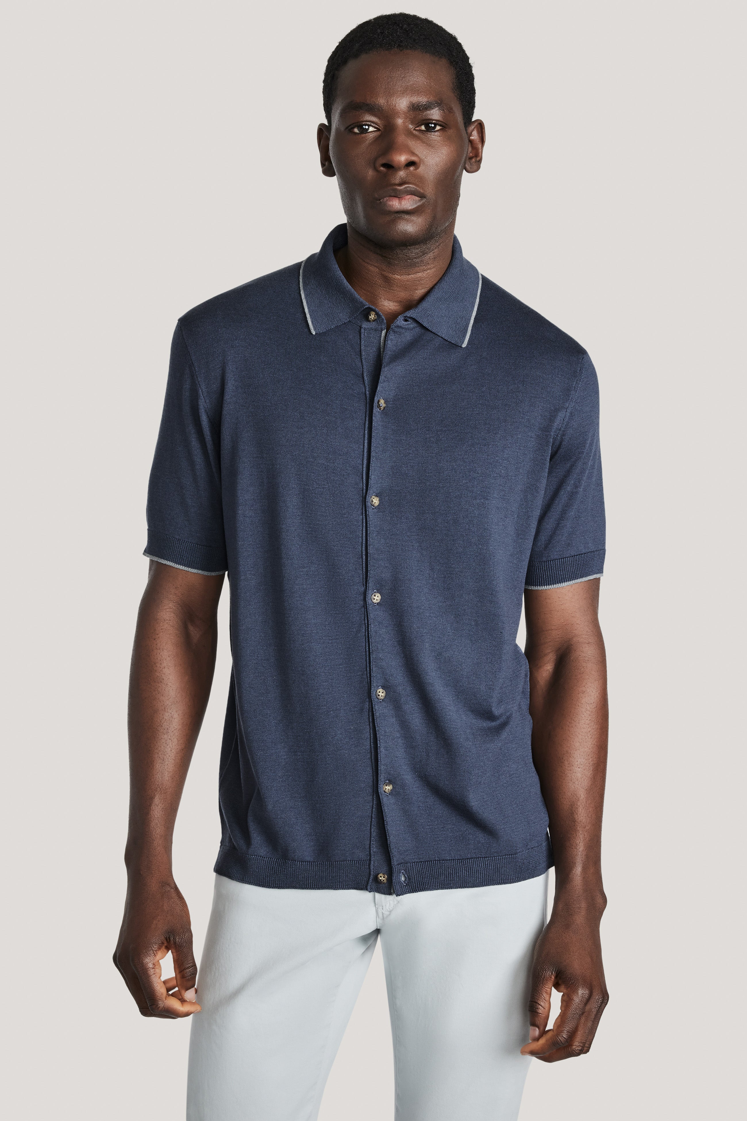 Crafted from the renowned Setico cotton-silk yarn, this button-through piece combines the softness of a sweater with the refinement of a shirt, offering a sophisticated alternative to a sport shirt.