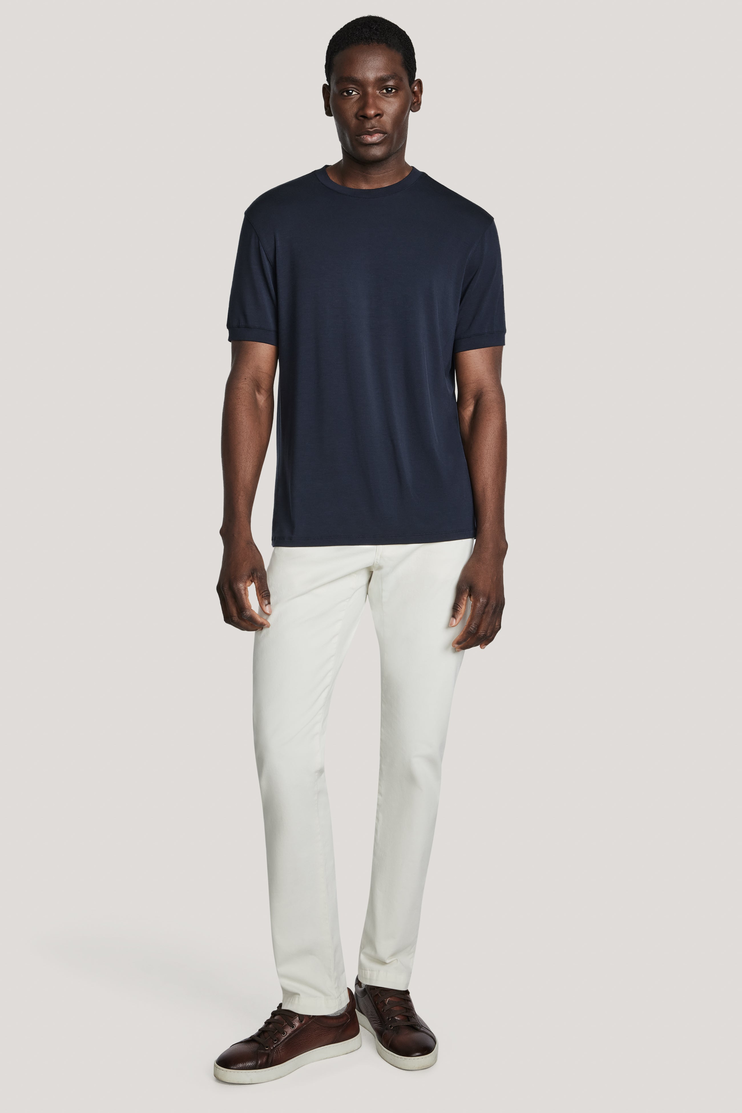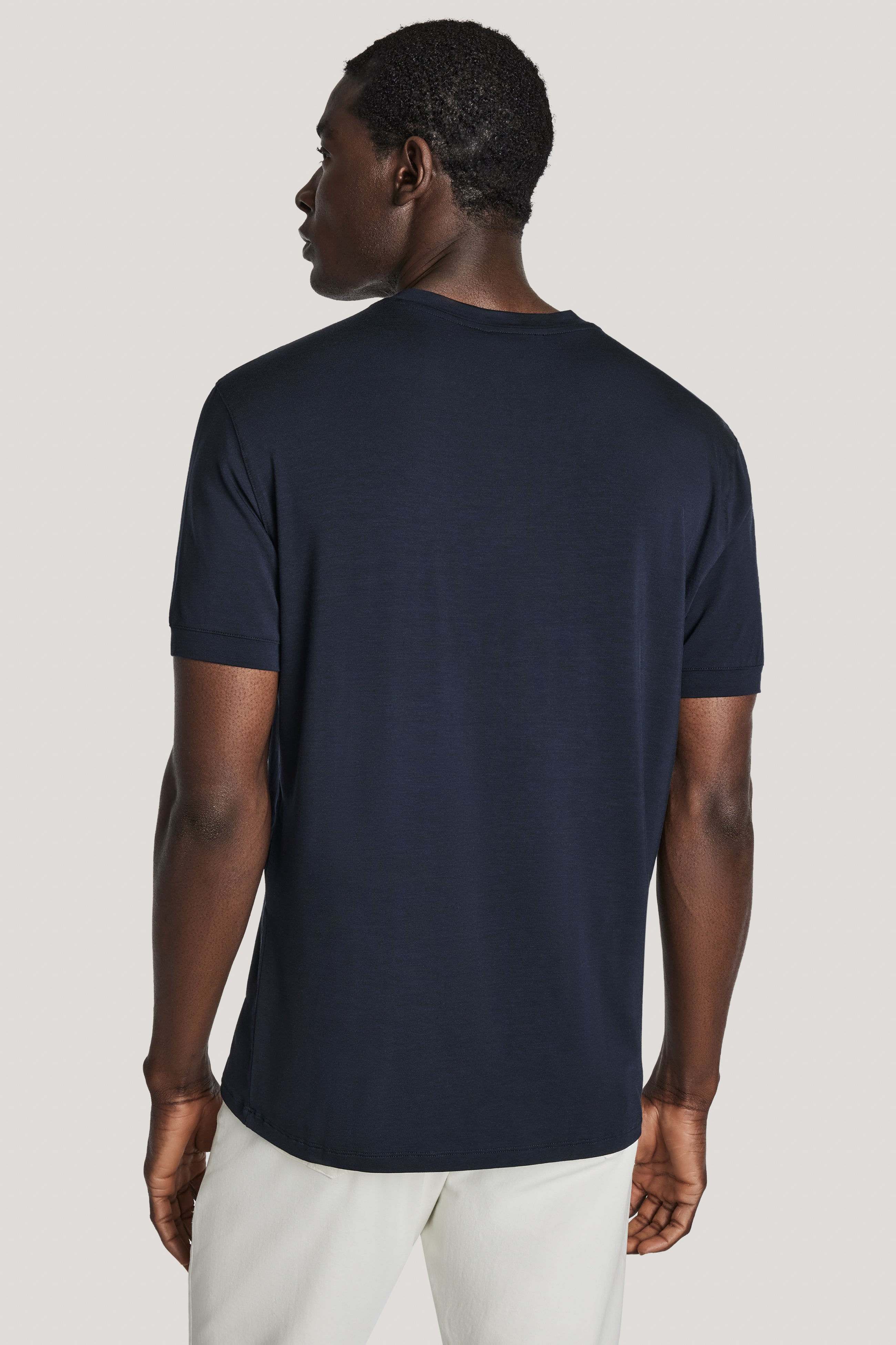 Introducing the first T-shirt in our collection, expertly made in Italy and crafted from a soft, breathable blend of 95% viscose and 5% elastane for a smooth hand and comfortable stretch. Designed in a contemporary fit, it features self-fabric detailing at the neck, cuff, and hem, along with single-needle stitching for a clean, elevated finish. With a set-in shoulder and solid color design, this versatile piece can be effortlessly dressed up or down, making it a refined essential for year-round wear.