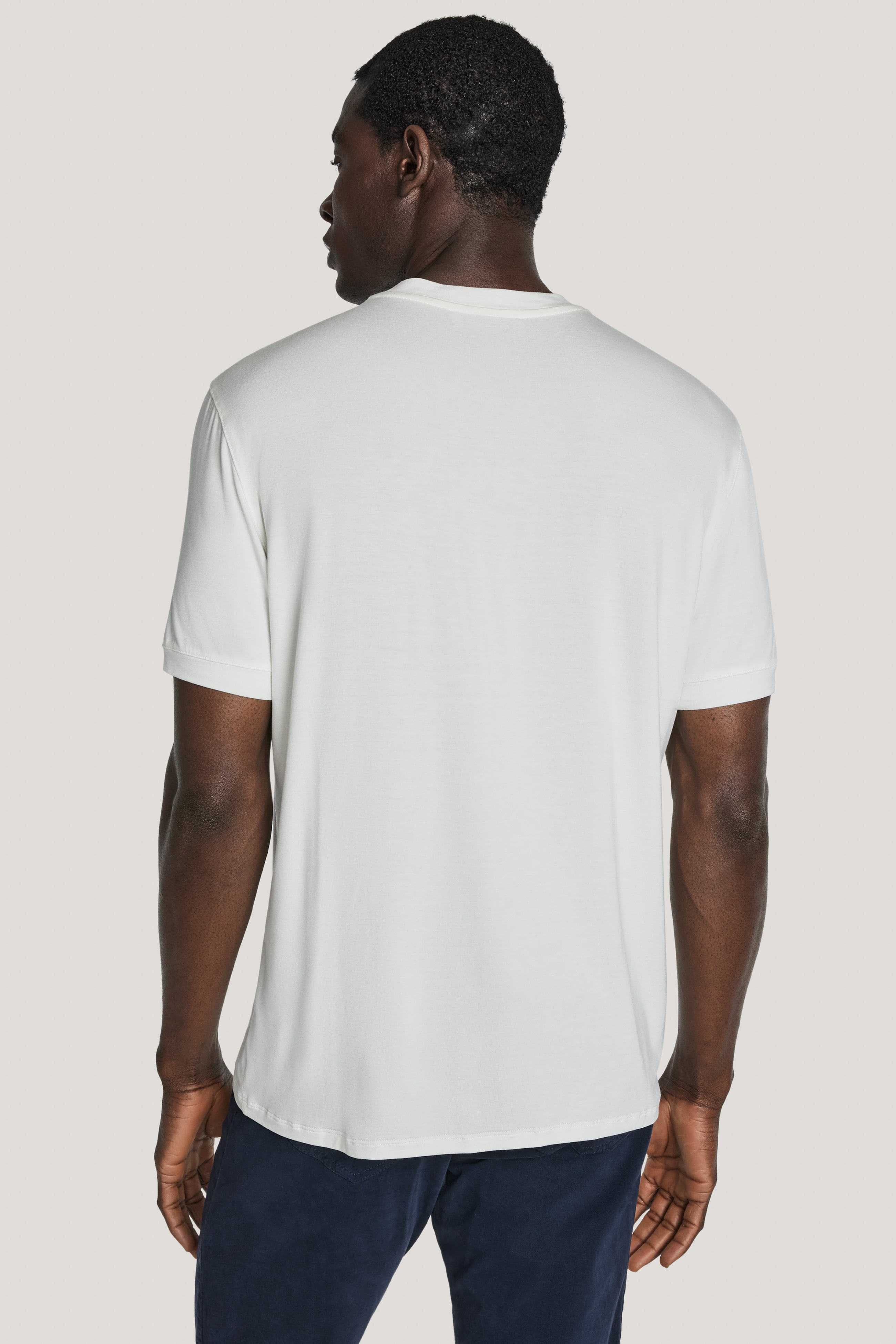 Introducing the first T-shirt in our collection, expertly made in Italy and crafted from a soft, breathable blend of 95% viscose and 5% elastane for a smooth hand and comfortable stretch. Designed in a contemporary fit, it features self-fabric detailing at the neck, cuff, and hem, along with single-needle stitching for a clean, elevated finish. With a set-in shoulder and solid color design, this versatile piece can be effortlessly dressed up or down, making it a refined essential for year-round wear.