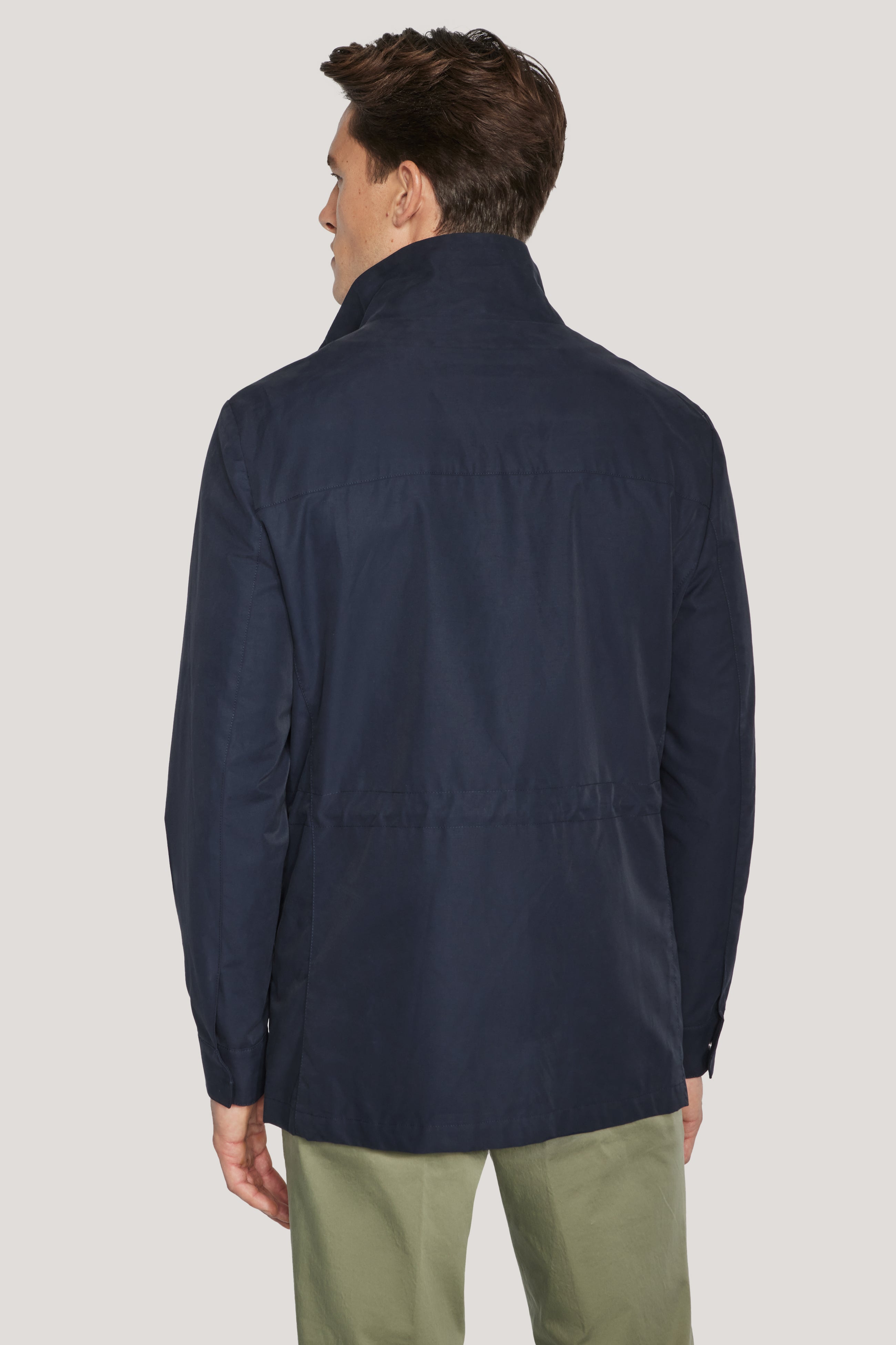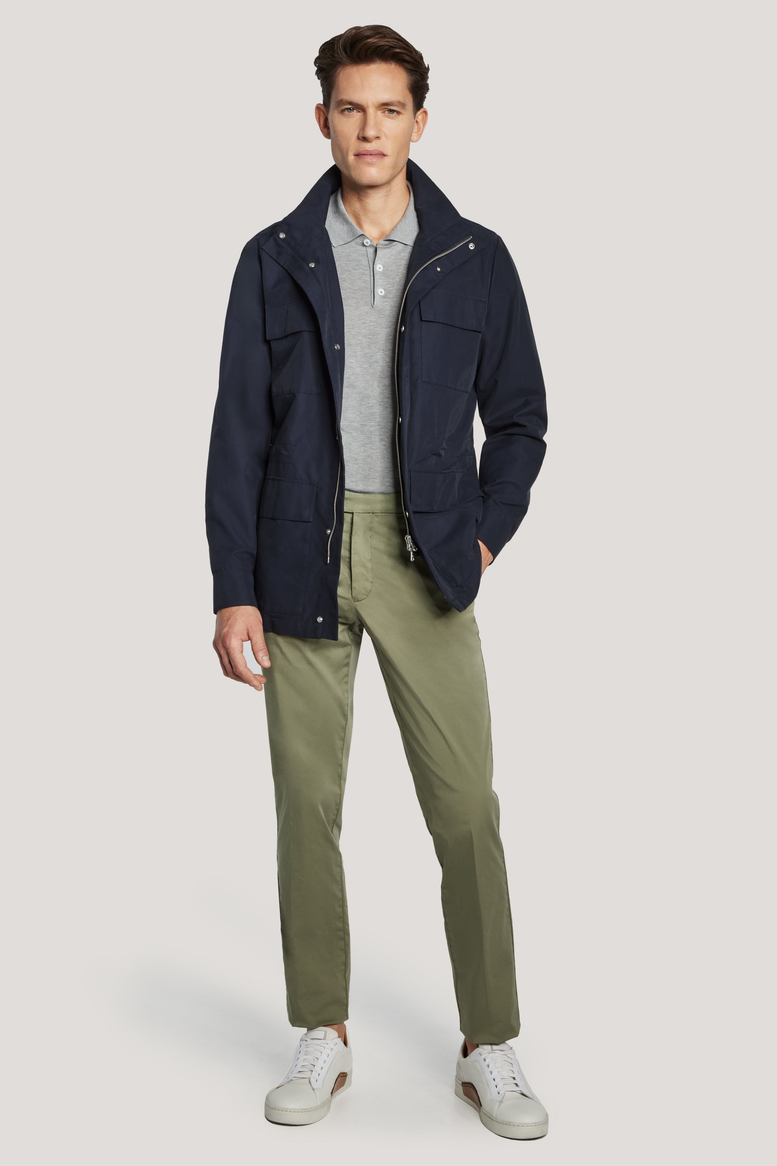 The Jonte is a field jacket part of the Elements capsule, a curated collection designed for cool or rainy days, that combines functionality with a sophisticated look. Designed for both style and function, this coat is crafted from an Italian-made water-repellent fabric, featuring hidden snaps, with an adjustable hidden elastic cord at the waist, and a convenient interior cellphone pocket. The hidden snaps on the patch pockets and rugged peach finish of the fabric add to its minimalist appeal while offering a sporty and sophisticated nonchalance.