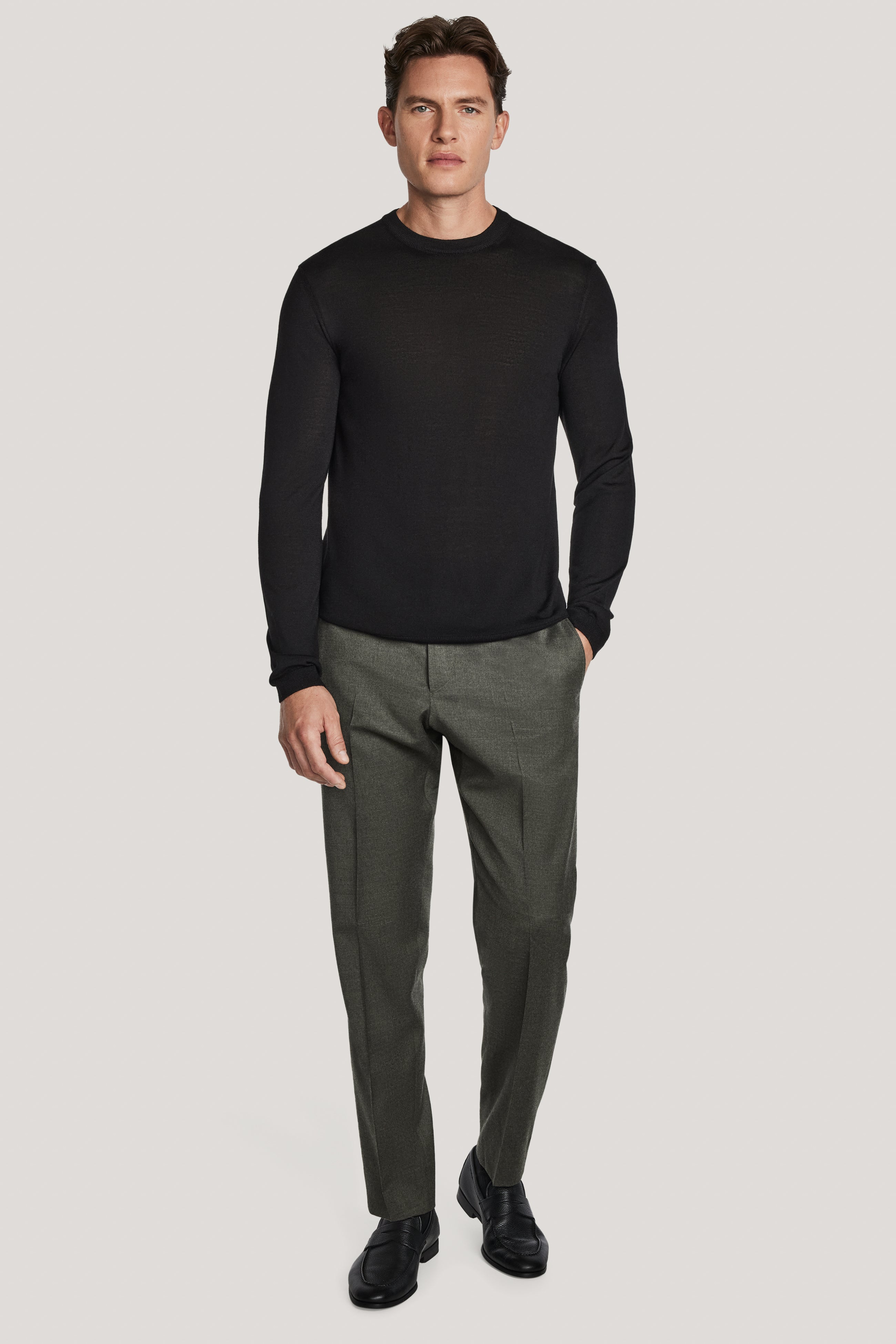 This long sleeve crew neck sweater is crafted in a lightweight, fully fashioned 14-gauge knit that offers a soft hand feel and excellent breathability for all-day comfort. Designed with a set-in shoulder for a clean, tailored silhouette, it features a 3cm cuff and hem for a subtle, refined finish. Perfect for layering or wearing on its own, this crew neck blends modern sophistication with effortless ease.
