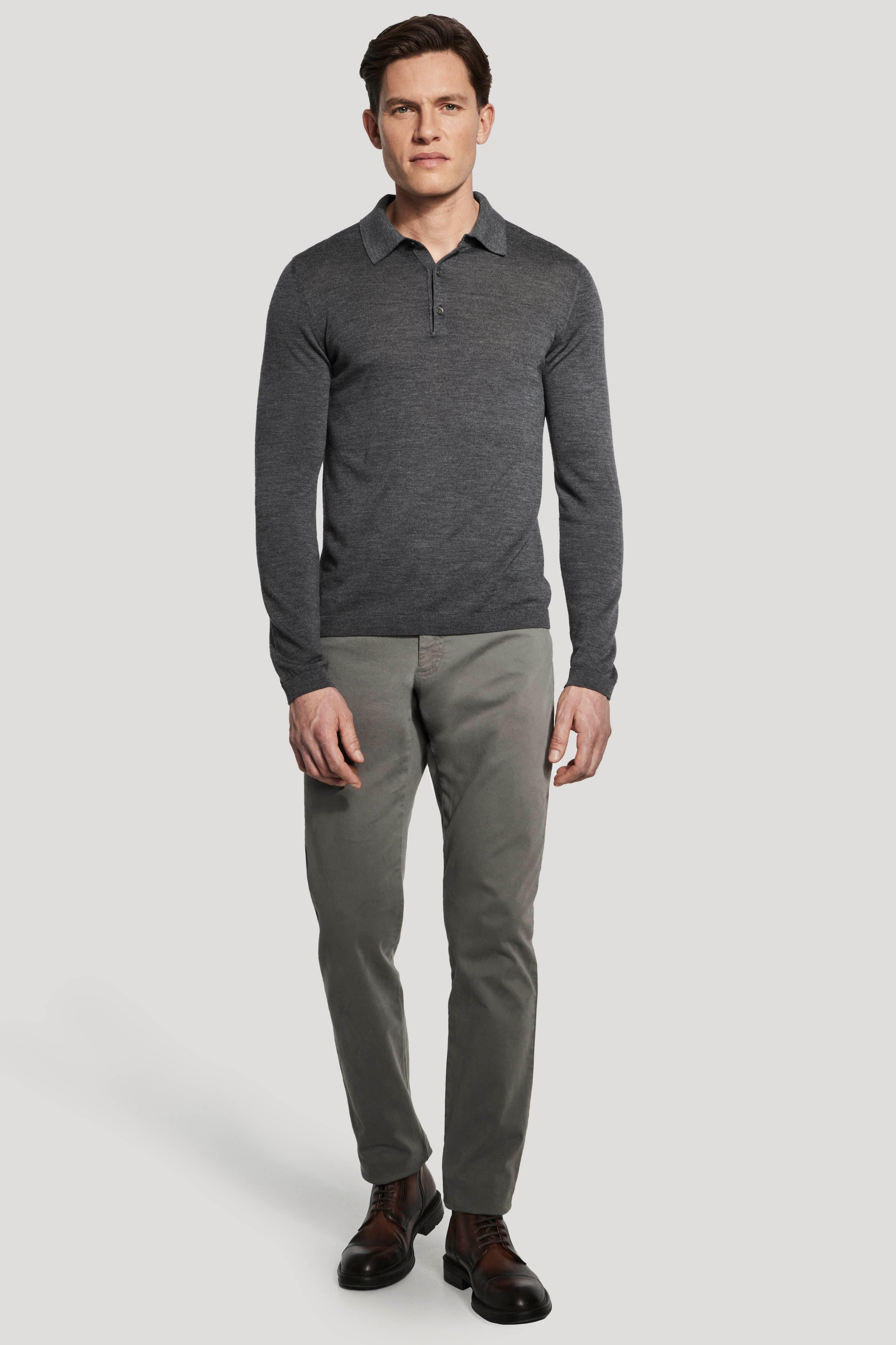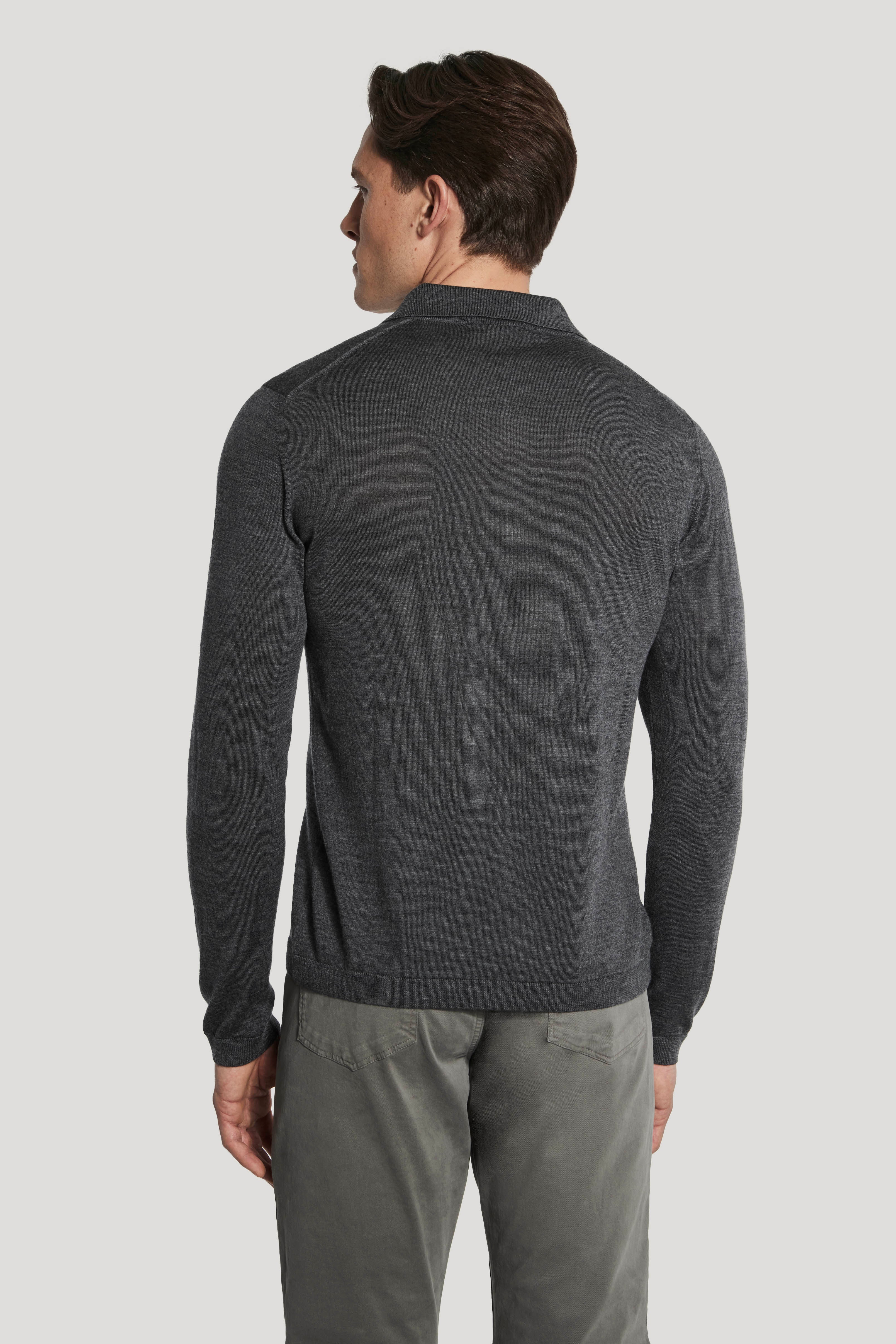 This long sleeve polo sweater is crafted in a lightweight, fully fashioned 14-gauge knit that offers a soft hand feel and excellent breathability for all-day comfort. Designed with a set-in shoulder for a clean, tailored silhouette, it features a 3cm cuff and hem for a subtle, refined finish. Perfect for layering or wearing on its own, this polo blends modern sophistication with effortless ease.