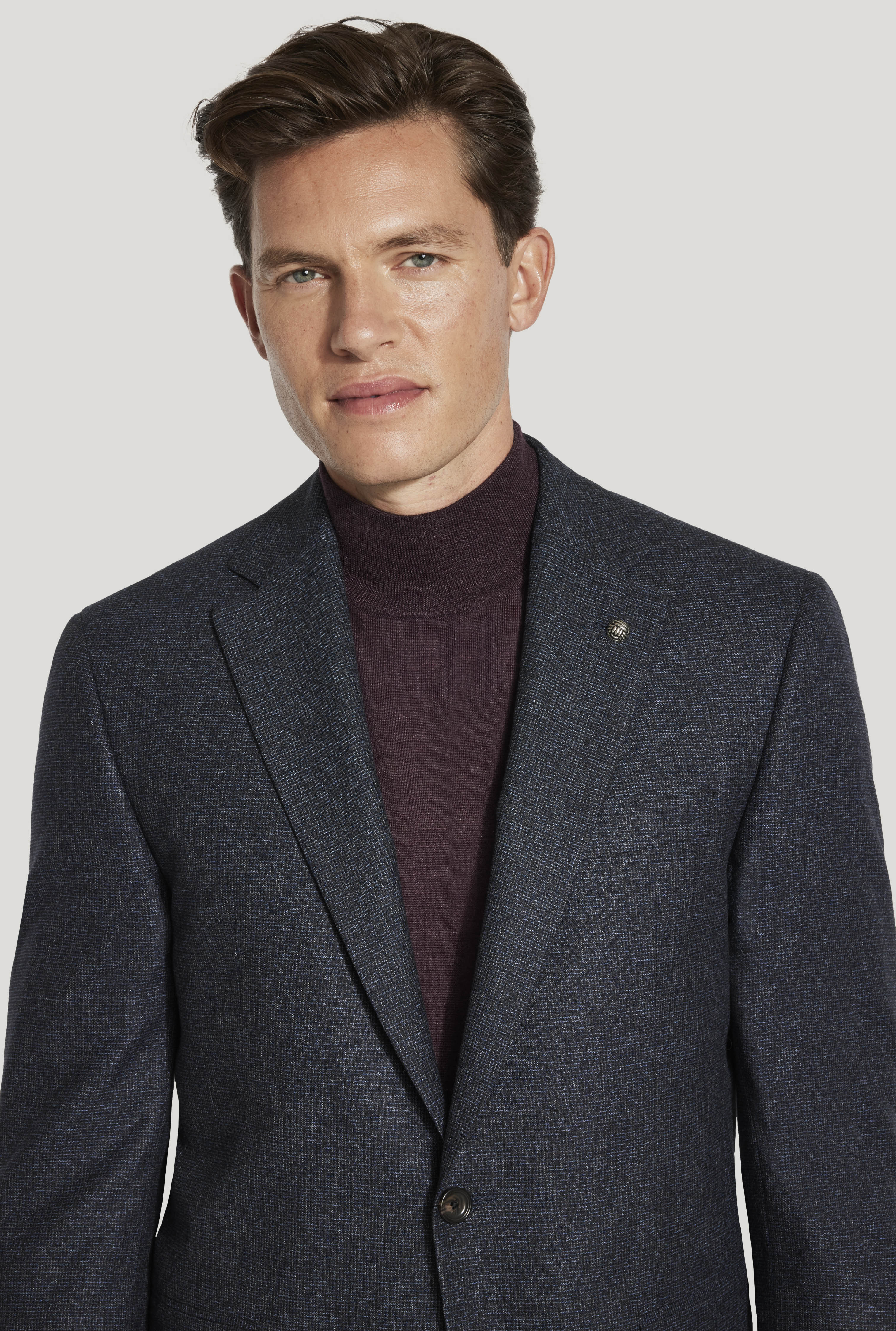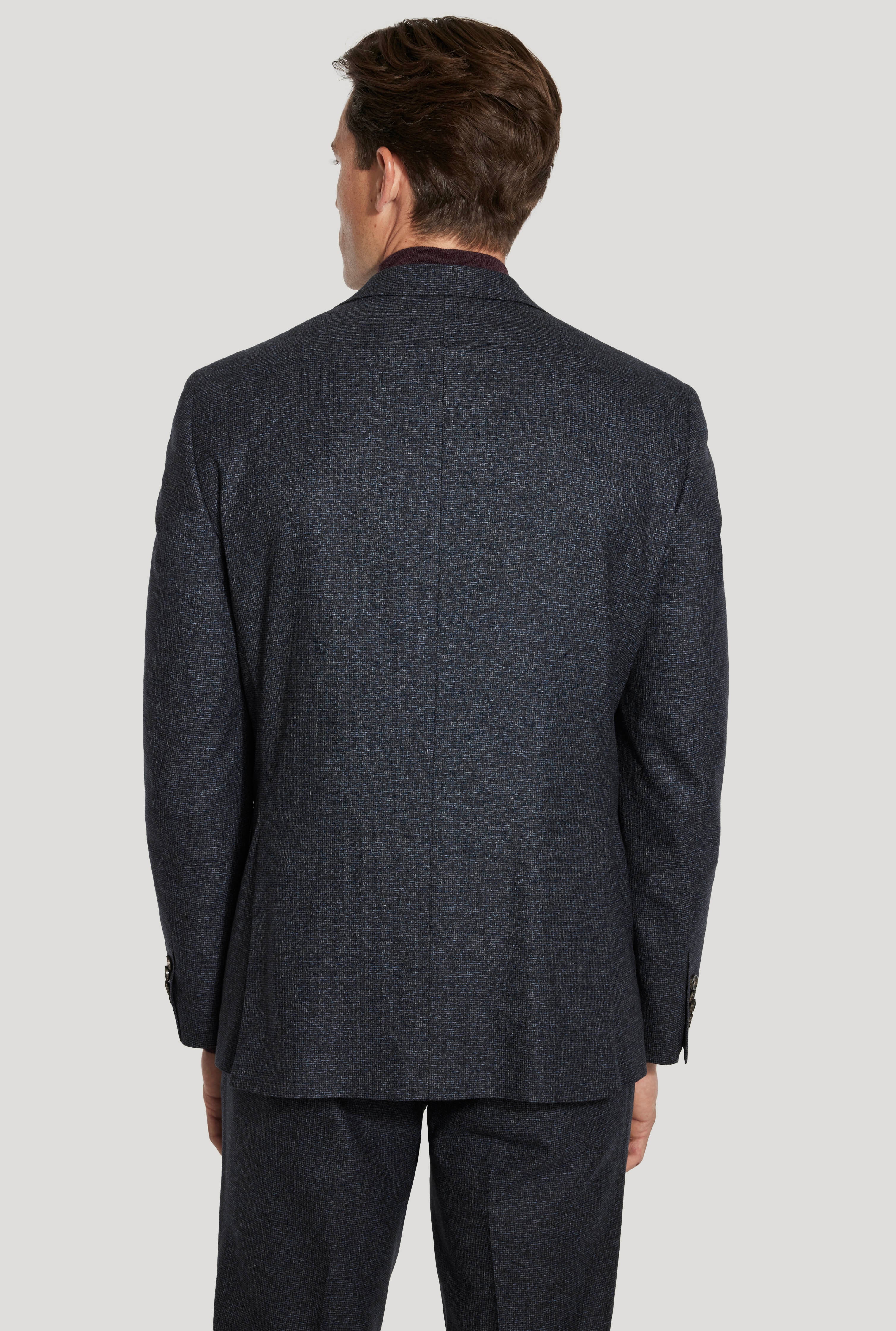 Designed for versatility, this navy and brown neat-patterned Esprit suit is crafted from a refined wool and cotton blend, offering a 3D textured look with a crease-resistant finish, making it ideal for travel and transitional wear into early fall. The single-breasted, two-button jacket features a notch lapel, soft construction, and full lining, ensuring both comfort and structure. Thoughtful tailoring details, including lower flap pockets, an upper welt breast pocket and inside pockets enhance its sophisticated appeal. A perfect balance of elegance and practicality, this suit seamlessly adapts to both business and smart-casual settings.