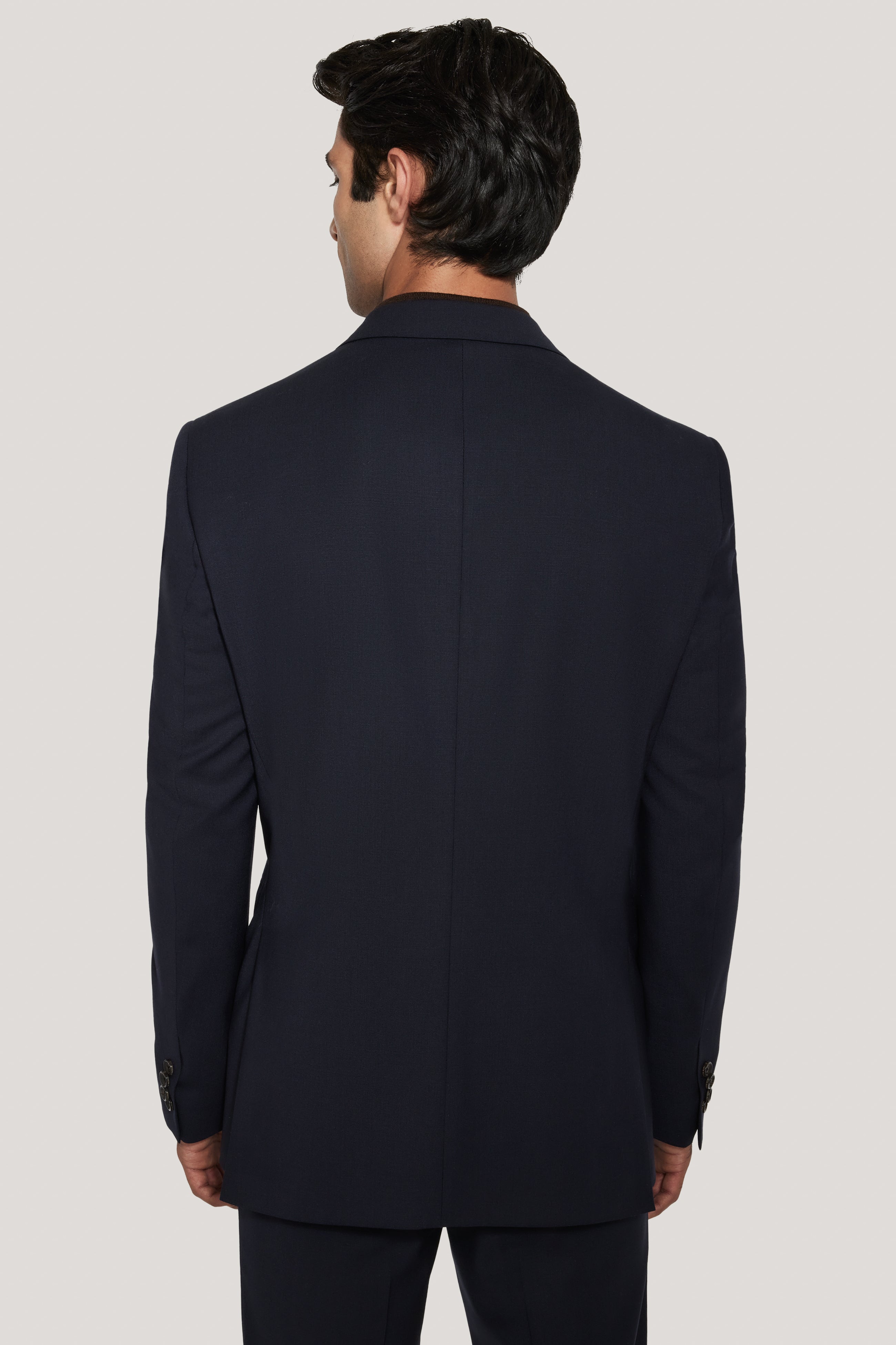From the TEMPO Collection, this navy suit is tailored in the Engel model, offering a refined balance of comfort and structure. Crafted from a 98% wool and 2% Lycra blend woven as a Bengaline, it provides subtle stretch for ease of movement and all-day wear. The single-breasted, two-button jacket features a peak lapel, lower flap pockets, an upper welt breast pocket, and interior pockets, all finished with soft construction and a fully lined interior for a polished, modern silhouette. Ideal for both professional and formal settings, this suit delivers timeless style with everyday comfort.