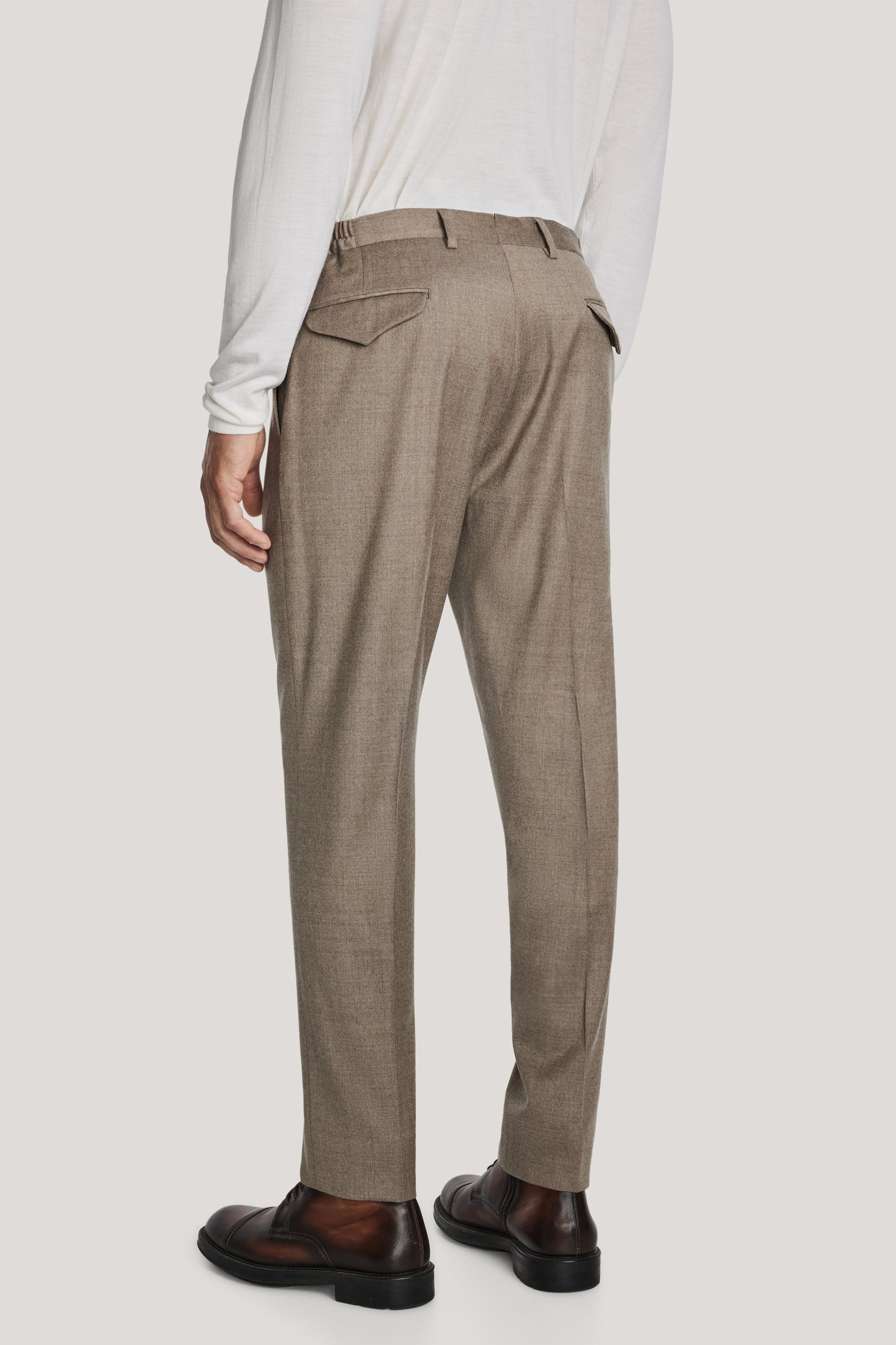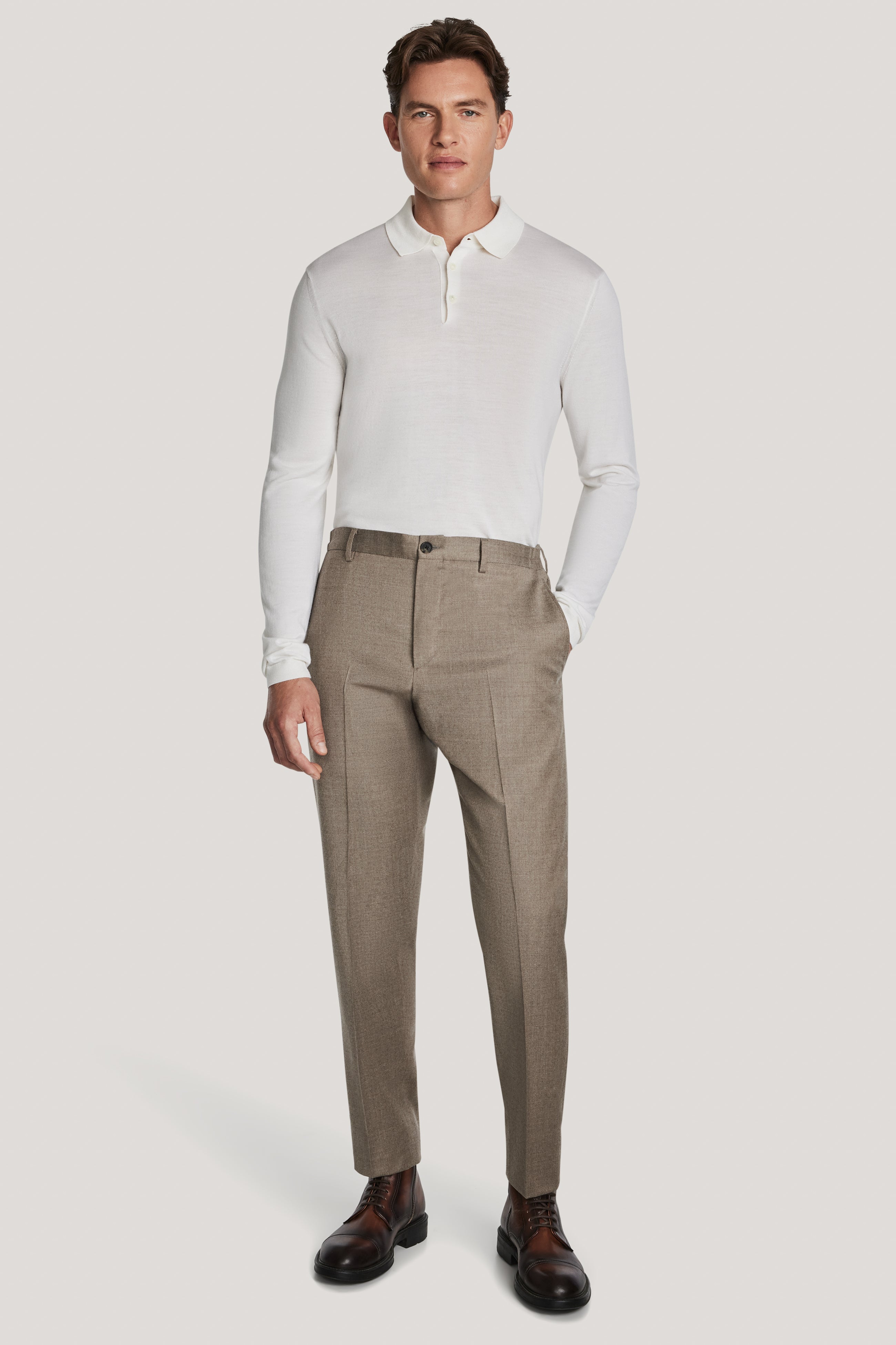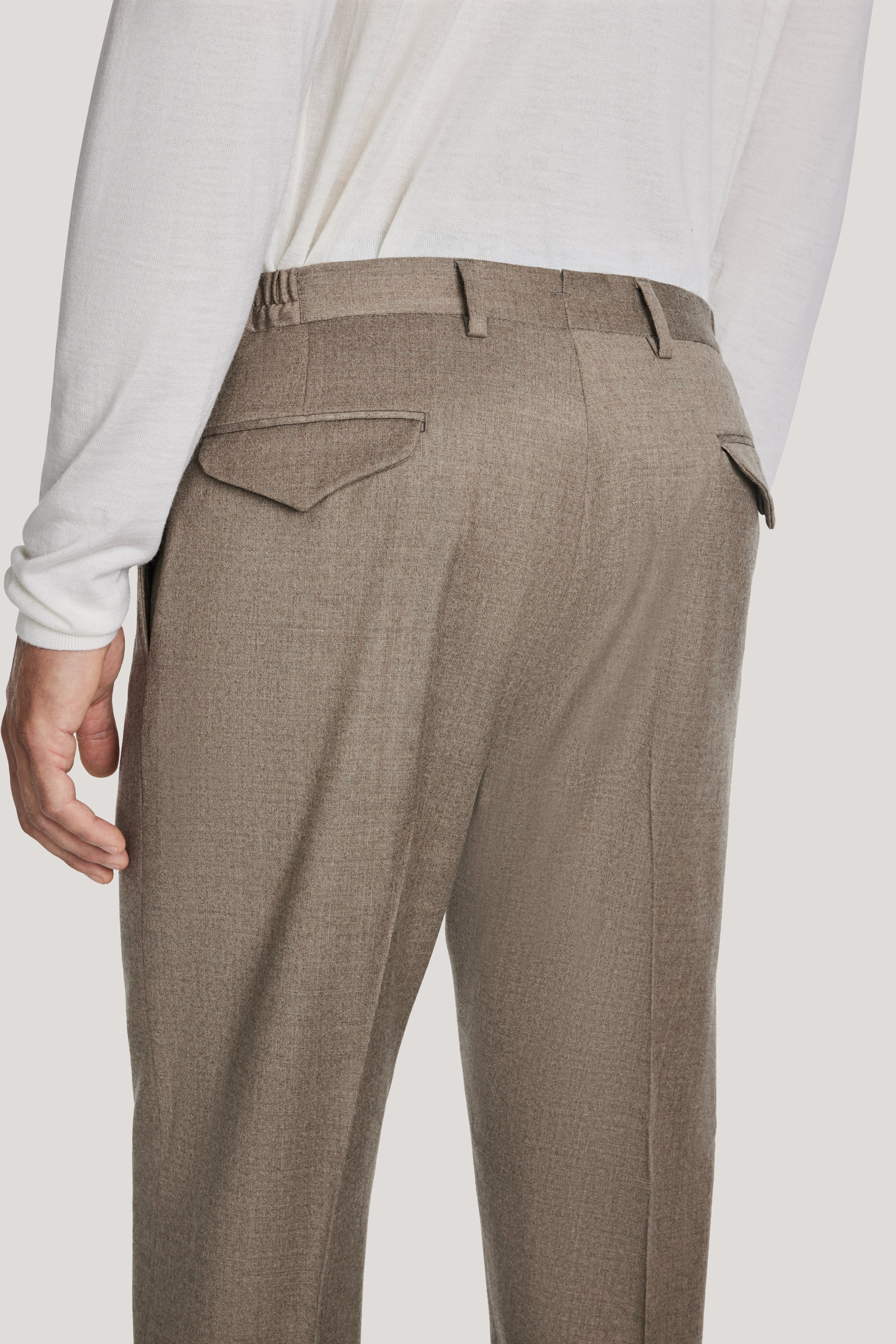 Crafted in Italy, the Prato Wool Flannel pant combines timeless elegance with everyday comfort. Featuring side elastic inserts on the waistband for a flexible fit and back flap pockets with concealed button closure, these trousers are made from a high quality wool with added stretch that elevates any wardrobe.